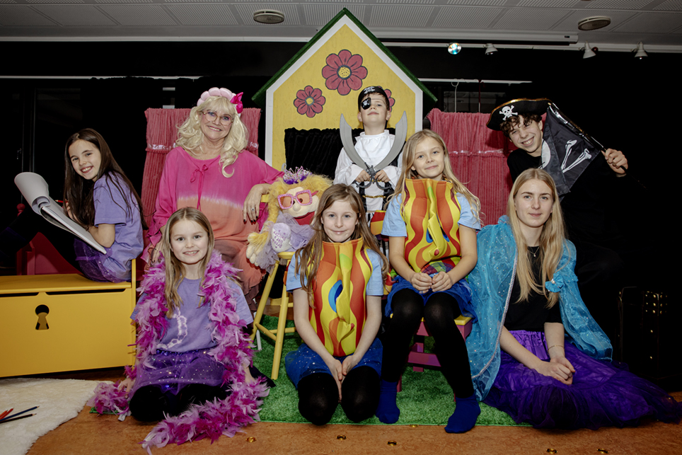 – Vi har spilt Absolutt Barnas Lollipop to ganger tidligere på Fana Kulturhus, men da i et mindre format. Nå er det mange flere barn på scenen og vi har også fått hjelp av Musikaljentene med koreografien. Det løfter det opp på et helt annet nivå, forklarer Kathleen ivrig. Med lang fartstid fra Fyllingsdalen Viseklubb, er Kathleen ildsjelen bak musikalen. I tillegg til å stå på scenen, har hun også regi, skrevet manus, fikset kostymer og designet rekvisitter med hjelp fra en snekkerivrig mann.